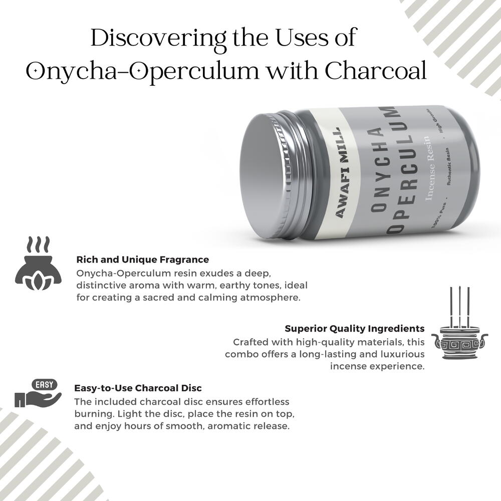 Onycha-operculum thin, a traditional incense with a rich fragrance Onycha holds historical and biblical significance Experience the captivating aroma of onycha-operculum thin during meditation, prayer Each package includes a charcoal tablet, ensuring a convenient and hassle-free burning experience