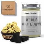 AWAFI MILL White Jawi | Tableta de carbón triangular - Botella de 100 gramos con 20 piezas de carbón