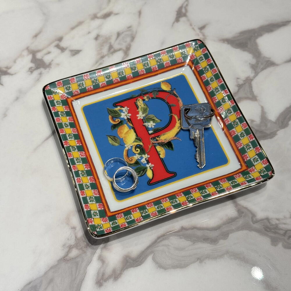 Un refinado vacía bolsillos de la suntuosa colección Ortigia, inspirado en las vibrantes tradiciones y la belleza natural de Sicilia. Ortigia, el corazón histórico de Siracusa, es famosa por sus colores, aromas y encanto mediterráneo — elementos que se reflejan maravillosamente en esta bandeja decorativa de porcelana. El diseño presenta un elegante monograma central adornado con frondosas ramas de limón, flores y hojas, celebrando los emblemáticos huertos de cítricos del sur de Italia. La composición está enmarcada por un borde geométrico y colorido que recuerda a la tradicional mayólica siciliana, creando un juego vivo y armonioso de color y motivos. Elaborada en fina porcelana con acabados luminosos, esta bandeja combina la elegancia artística con la funcionalidad cotidiana. Ideal para guardar llaves, joyas, monedas u otros pequeños objetos personales, también sirve como un elemento decorativo que aporta frescura, color y calidez mediterránea a cualquier interior.