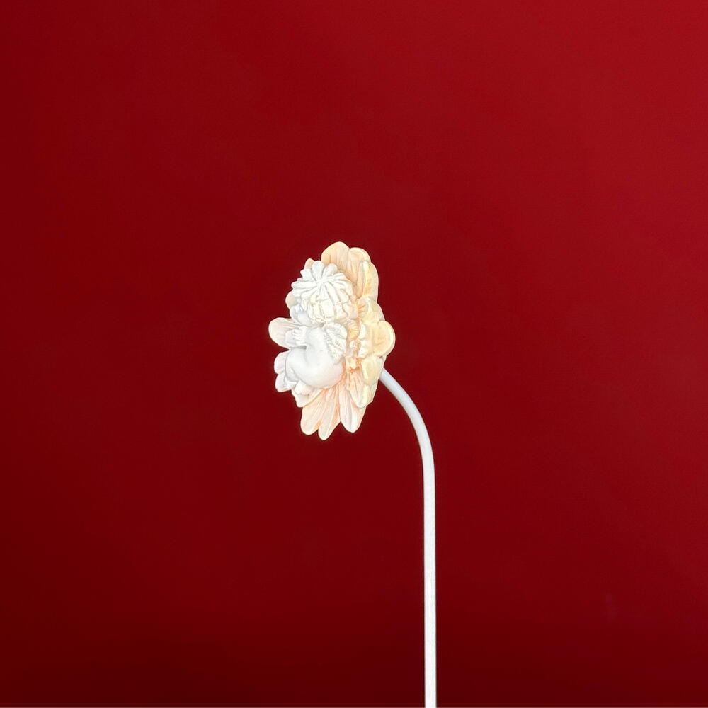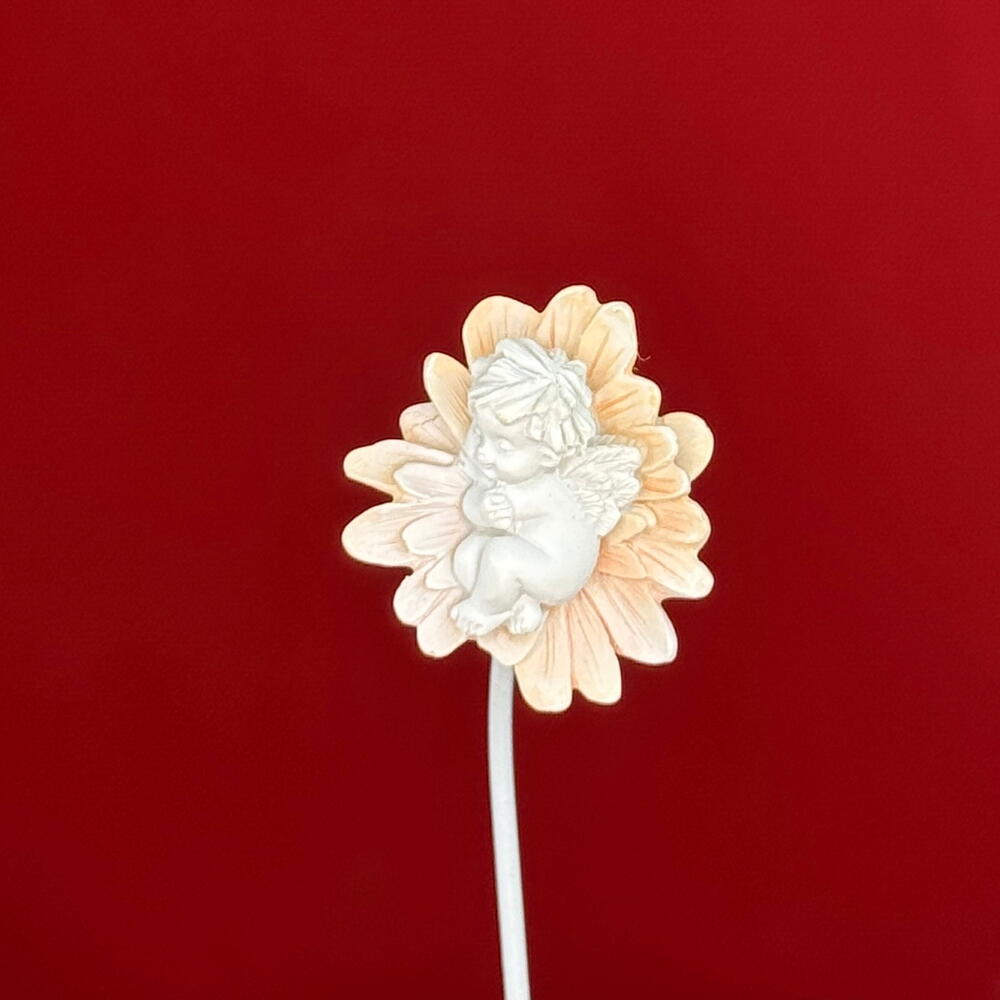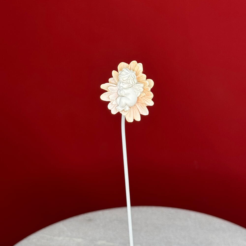 Déjate llevar con Petal Dreams. Este exquisito adorno de cerámica captura a un pequeño angelito dormido acurrucado suavemente dentro de una flor en plena floración. Un acento perfecto y sereno para tu decoración festiva.