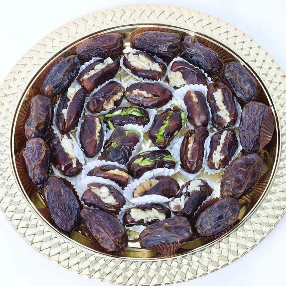 Assorted Dates Platter Weight - 350gm Approx Arranged in a Golden Color Round Platter
