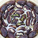 assorted dates platter - 350 gr golden color round platter - 1 ud.