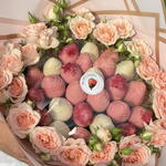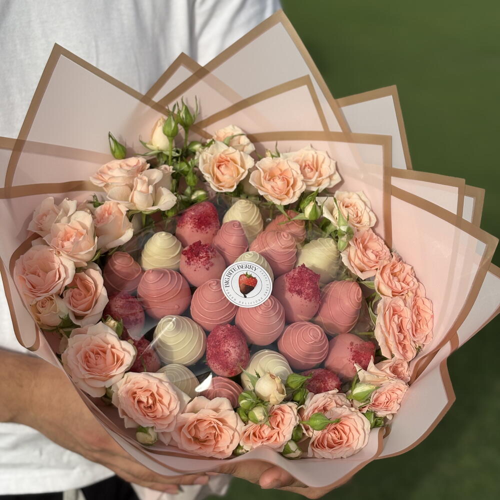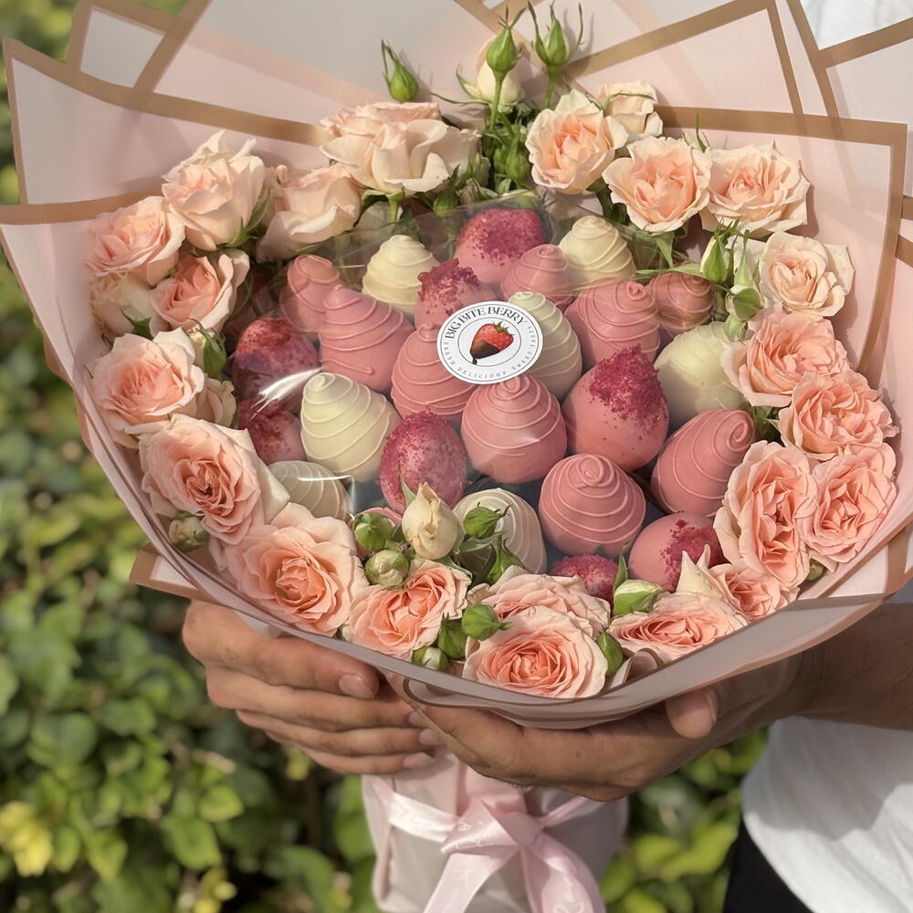 Chocolate blanco belga Callebaut: azúcar, manteca de cacao (27,4%), leche entera en polvo, emulgente (lecitina de soja), vainilla natural. Chocolate belga con fresas Callebaut: pasta de cacao, azúcar, manteca de cacao, emulgente (lecitina de soja), vainilla natural. → La cantidad de fresas en un ramo puede variar según el calibre de las bayas; el peso y el diámetro del ramo (indicados en la descripción) se mantienen inalterados.⠀ ⠀ → Las bayas del ramo están protegidas del embalaje y de otras agresiones externas por una película transparente.⠀ ⠀ ⠀⠀ La vida útil de las fresas con chocolate es de 12 horas en el refrigerador, y de 24 horas sin chocolate. Temperatura de almacenamiento: de +4 a +6 °C (en el refrigerador). No se recomienda agitar ni voltear el ramo; es mejor mantenerlo en posición vertical. Recomendamos consumir las bayas inmediatamente o, tras desmoldarlas, guardarlas en el refrigerador.
