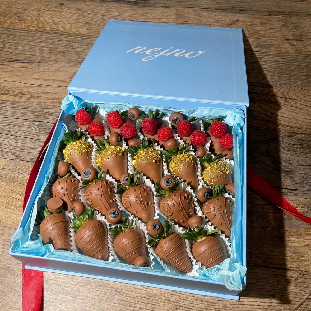 20 fresas cubiertas de chocolate con varias coberturas