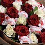 Red rose - 11 ud. White rose - 10 ud. wrapping paper - 4 ud. chocolate Raffaello - 10 ud.