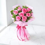Ramo de 10 rosas color rosa con rellenos en un bonito envoltorio. Elegante ramo de 10 rosas color rosa frescas con delicados rellenos, envuelto hermosamente para una presentación encantadora. Este ramo de rosas color rosa es perfecto para regalos románticos, cumpleaños y ocasiones especiales. Flores seleccionadas a mano garantizan frescura, color suave y belleza duradera. Consejo de cuidado: Corta los tallos, colócalos en agua limpia y mantenlos alejados de la luz solar directa. Cambia el agua cada 2 días para mantener la frescura y prolongar la vida en jarrón.