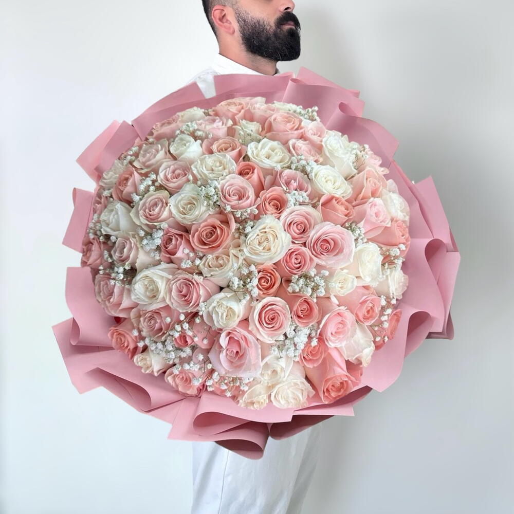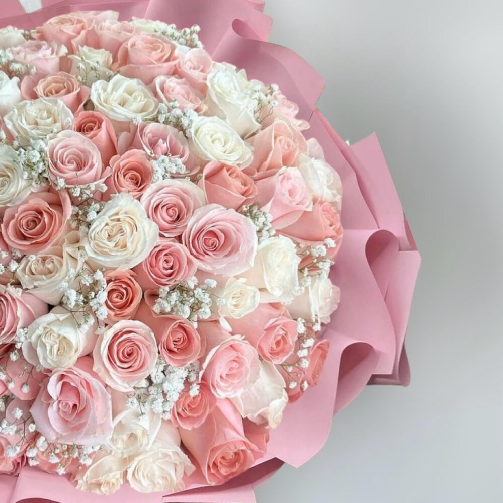 Pink rose - 50 ud. White rose - 50 ud. Gypsophila - 10 ud. también puedes solicitar 101 - 101 ud.