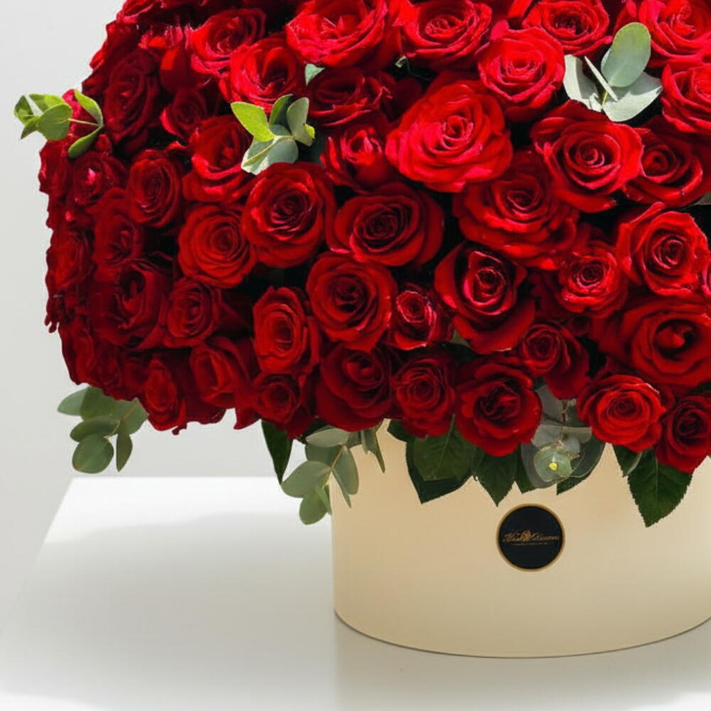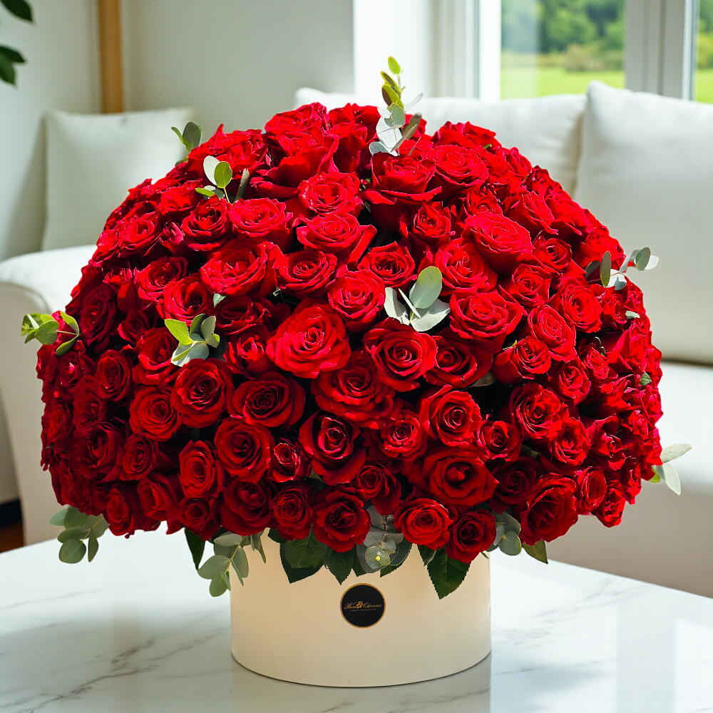 Exprese su amor y pasión con este magnífico arreglo de 201 rosas rojas, bellamente presentado en una lujosa caja blanca con delicados rellenos verdes que le aportan contraste y profundidad. Cada rosa es seleccionada a mano por su textura aterciopelada, su intenso tono carmesí y su impecable floración, que simbolizan amor eterno, admiración y devoción. Diseñada por floristas expertos, esta obra maestra irradia elegancia y sofisticación, convirtiéndola en el regalo perfecto para aniversarios, pedidas de mano, bodas o cualquier momento inolvidable. ✨ Detalles: ✓ 101 rosas rojas premium con relleno verde fresco ✓ Arreglado en una lujosa caja blanca de diseño ✓ Simboliza pasión, romance y amor eterno ✓ Ideal para aniversarios, pedidas de mano y celebraciones especiales ✓ Entrega el mismo día disponible en todo Dubai JVC “¡Declare su amor con gran realismo! ¡Pida hoy mismo su Caja de 101 Rosas Rojas!” “¡Haga florecer sus corazones con un romance eterno! ¡Compre ya esta lujosa obra maestra floral!” Celebre el amor y la elegancia con 101 rosas que lo dicen todo: ¡pídelas hoy mismo!