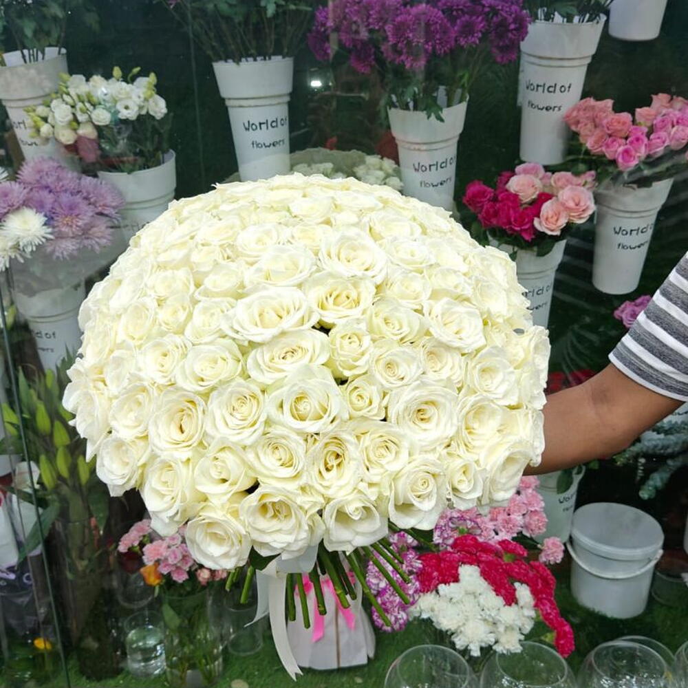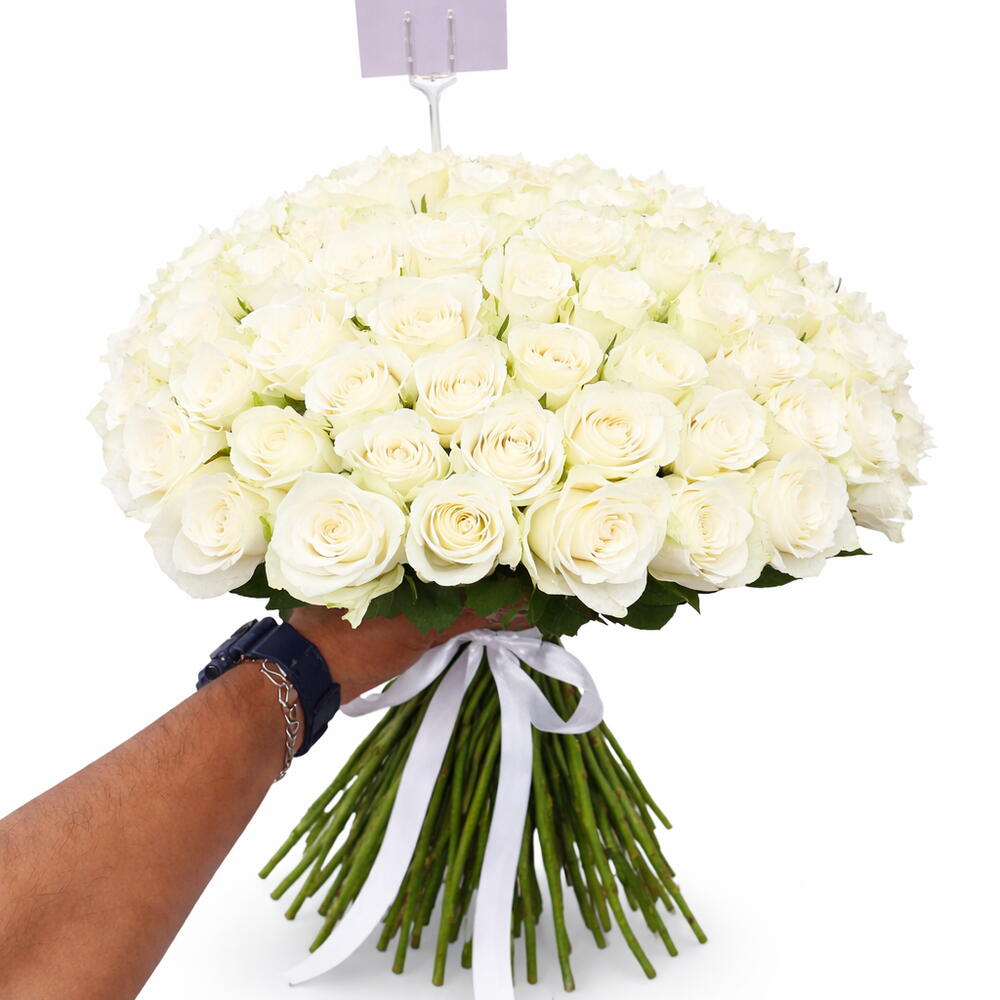 Haz una declaración atemporal con nuestro Ramo de 101 Rosas Blancas, bellamente elaborado a mano con 101 rosas blancas frescas de primera calidad. Simbolizando pureza, elegancia y amor eterno, este ramo de lujo es perfecto para bodas, aniversarios, compromisos, propuestas, cumpleaños y celebraciones especiales. Cada ramo es arreglado por floristas profesionales utilizando rosas blancas frescas de tallo largo, envuelto en elegante papel premium y rematado con una cinta de satén para un aspecto sofisticado. Garantizamos entrega de flores el mismo día en Dubái y Sharjah, con las flores entregadas frescas, fragantes y listas para impresionar.