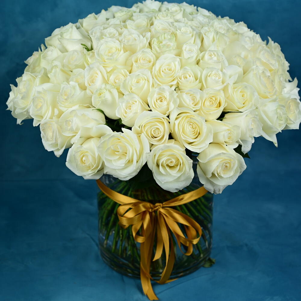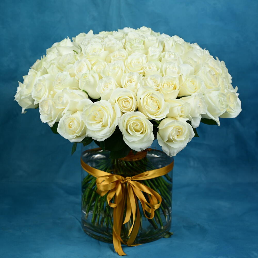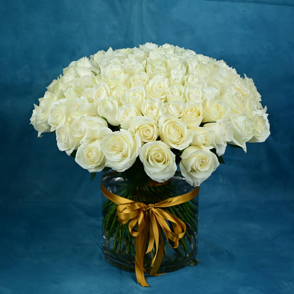 Jarrón de 101 rosas blancas