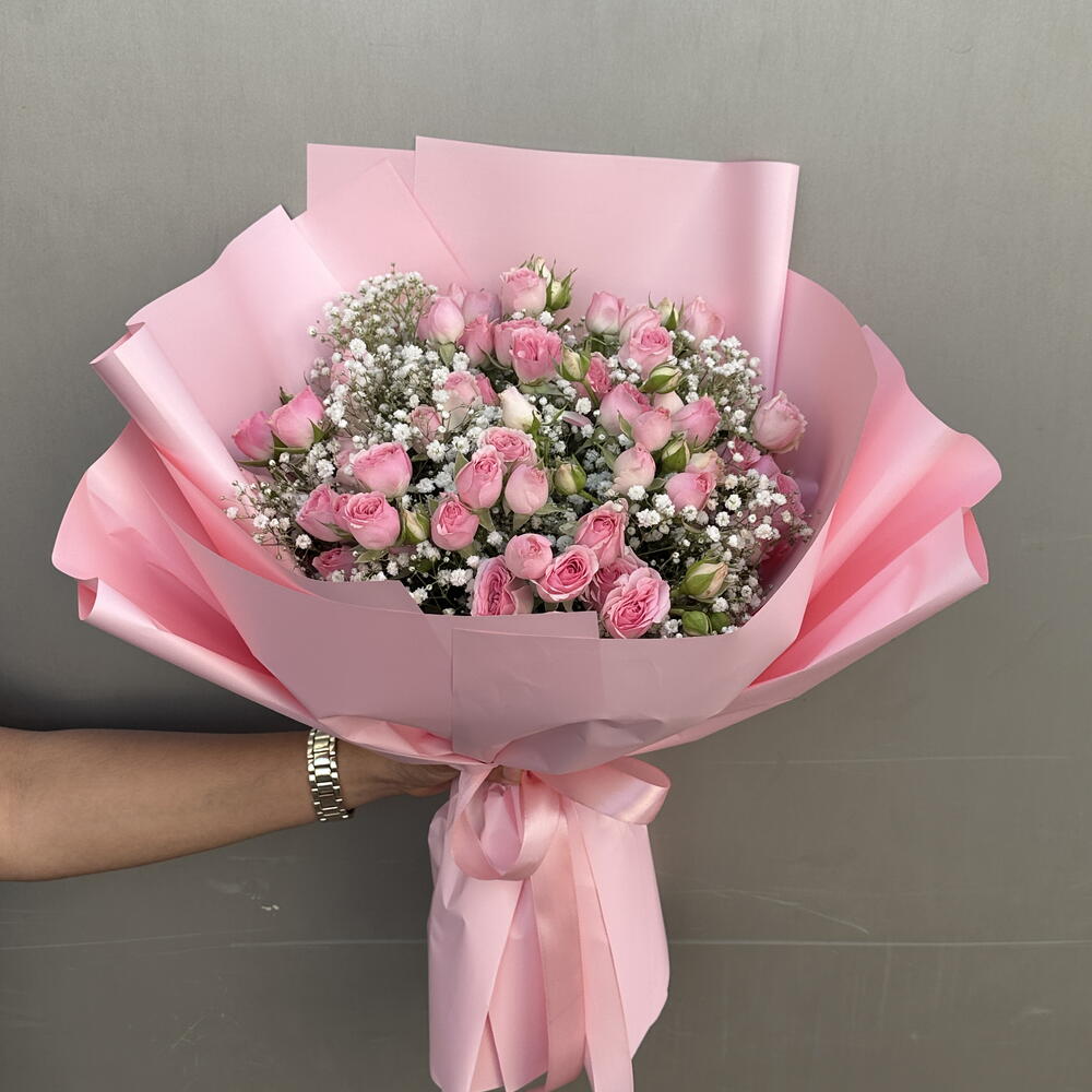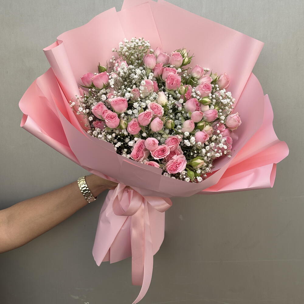 Gypsophila - 5 ud. pink spray rose - 11 ud.