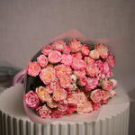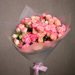 El ramo de 11 rosas spray Sunset muestra la vibrante belleza de rosas de tonos cálidos naranja y amarillo, que recuerdan a un impresionante atardecer. Estas delicadas rosas spray son perfectas para añadir un toque alegre y romántico a cualquier ocasión, ya sea como un regalo sincero o una hermosa decoración floral. Un tallo de rosas spray puede tener 3 o 4 flores.