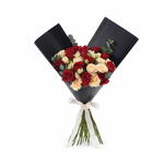 Un ramo donde la pasión se encuentra con la ternura: el Ramo de 20 rosas rojas y melocotón es una elegante sinfonía de tonos rojo intenso y melocotón suave. Cuidadosamente arreglado a mano en un lujoso envoltorio negro y atado con una cinta de raso, este arreglo habla por sí solo cuando las palabras se quedan cortas. Ya sea que estés expresando afecto, admiración o celebrando un momento significativo, sus tonos intensos y sus texturas elegantes prometen dejar una impresión inolvidable.