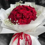 Este ramo de 20 rosas rojas es la combinación perfecta de amor apasionado y dulce ternura. Las veinte rosas de color rojo intenso contrastan con la ligereza y la ligereza de la gypsophila (pequeñas flores blancas de relleno). Envuelto en dos hojas impecables y atado con una cinta de raso, este ramo es impresionante, romántico y perfecto para celebrar un gran momento o sorprender a alguien especial. ¿Qué lo hace especial? Apasionado y pleno: Recibirás 20 rosas rojas premium, el símbolo definitivo del amor. Detalles suaves: El toque de gypsophila blanca le da un toque delicado y encantador. Presentación excepcional: Envuelto con cuidado en dos hojas y rematado con una elegante cinta de raso. Tamaño impresionante: Sus dimensiones lo convierten en un regalo grande, llamativo y muy generoso. ¿Qué contiene el ramo? Rosas rojas: 20 unidades Gypsophila: 1 unidad Hojas para envolver: 2 unidades Cinta de raso: 1 unidad Tamaño y precio Tamaño: Ancho 35 cm, Alto 40 cm Precio actual: 150 AED (antes 200 AED)