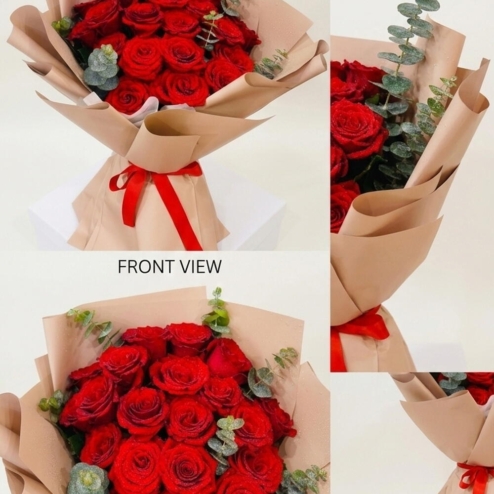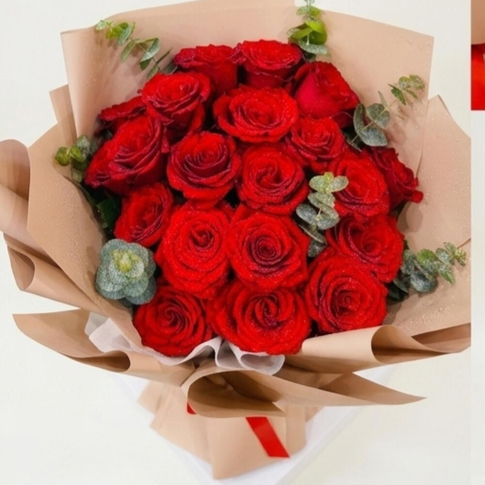 Red rose - 20 ud. Eucalyptus - 6 ud.