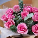 Rosas rosadas de lujo | 21 rosas frescas en envoltorio blanco y marrón | Entrega de regalos en Dubái