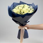 White rose - 21 ud. Gypsophila - 4 ud. envoltura azul - 5 ud.