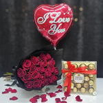 Red rose - 21 ud. Ferrero rocher - 24 ud. wrapping paper - 4 ud. globo metalizado te amo - 1 ud.
