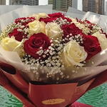 Ramo de 24 rosas rojas y blancas con gypsophila