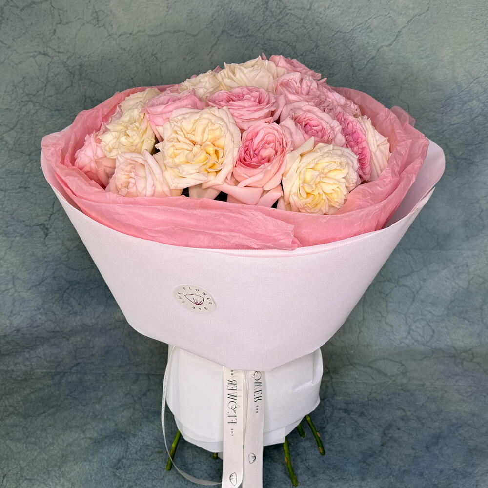 ¡Experimenta la tranquilidad de un jardín sereno con nuestro encantador Mono Bouquet! Acunado en una bolsa de regalo de diseño refinado, este ramo florece con una etérea rosa de jardín blanca, que irradia pureza e inocencia. Para aumentar su atractivo, el ramo está adornado con 15 encantadoras rosas de jardín rosadas, prometiendo encanto y romanticismo de una suave tarde de verano. Perfecto para regalar en cualquier ocasión o simplemente para refrescar delicadamente el ambiente de tu entorno.