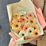 Satin ribbon - 1 ud. mini gerbera - 19 ud. papel de regalo beige - 2 ud.