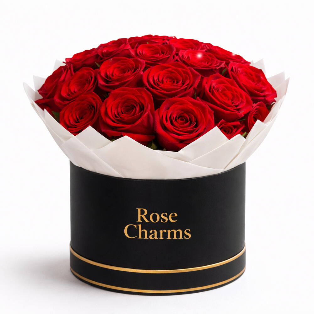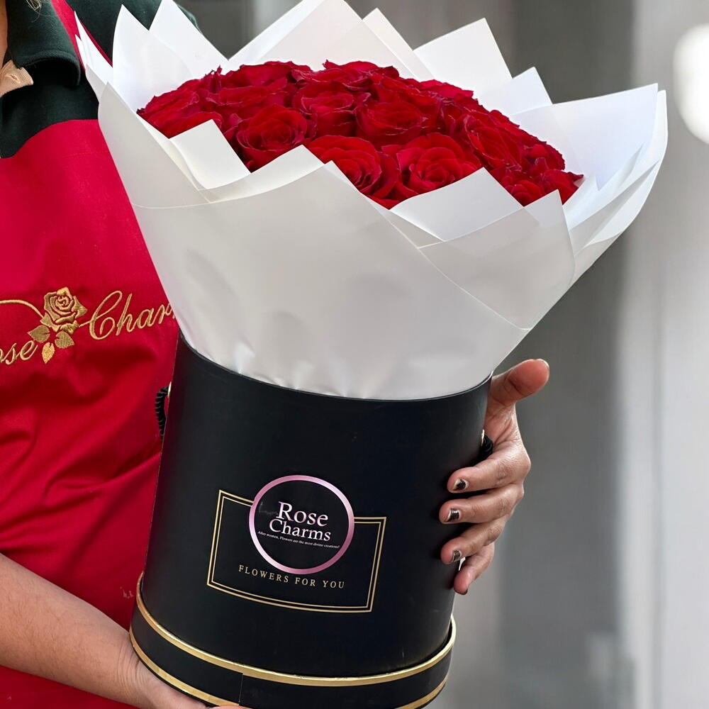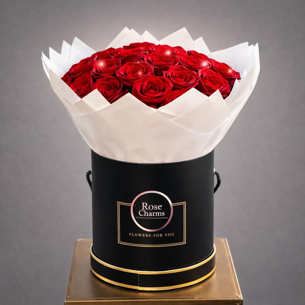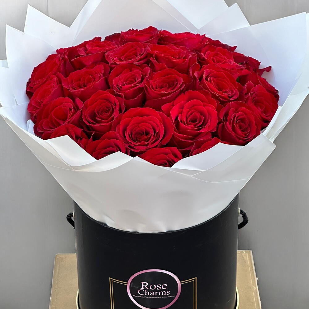 Red rose - 25 ud. Box - 1 ud. envoltura blanca - 3 ud.