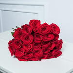 Ramo de 25 rosas rojas románticas atado a mano 7463