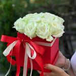 Composición: rosa blanca - 25, caja - 1, cinta - 2 Dimensiones: ANCHO - 17CM; ALTO - 20CM; LARGO - 20CM; (incluyendo el embalaje) Tamaño: 17 x 20 x 20 cm