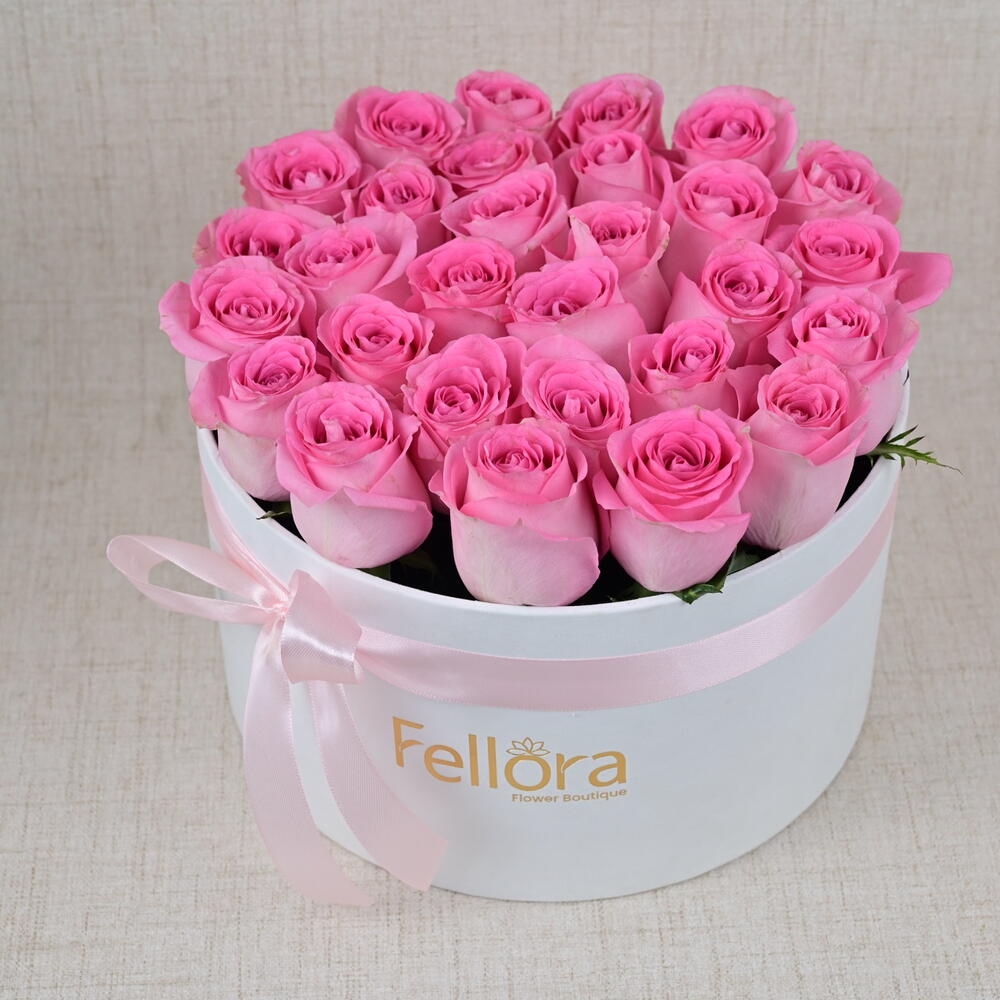 31 rosas rosadas en una caja blanca-1926