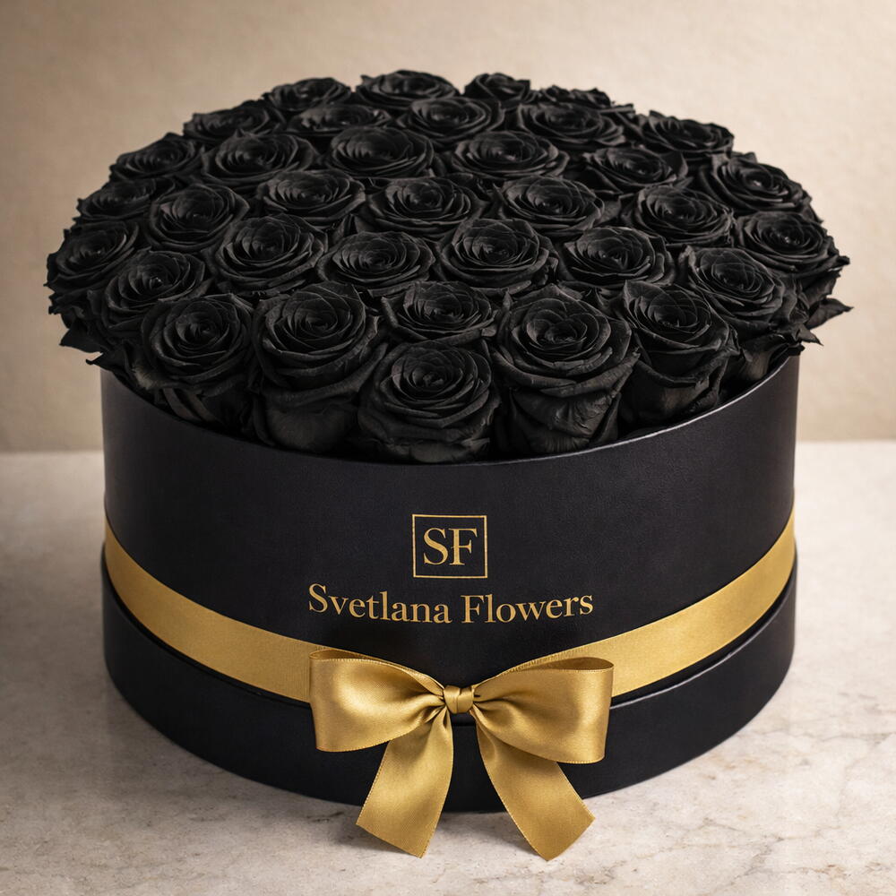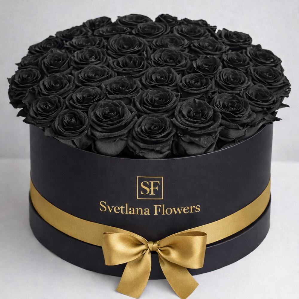 Caja de lujo de 41 rosas negras – Regalo romántico y audaz