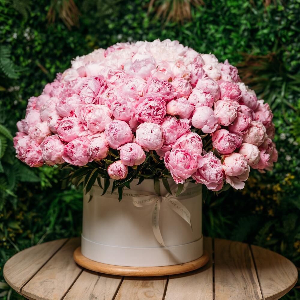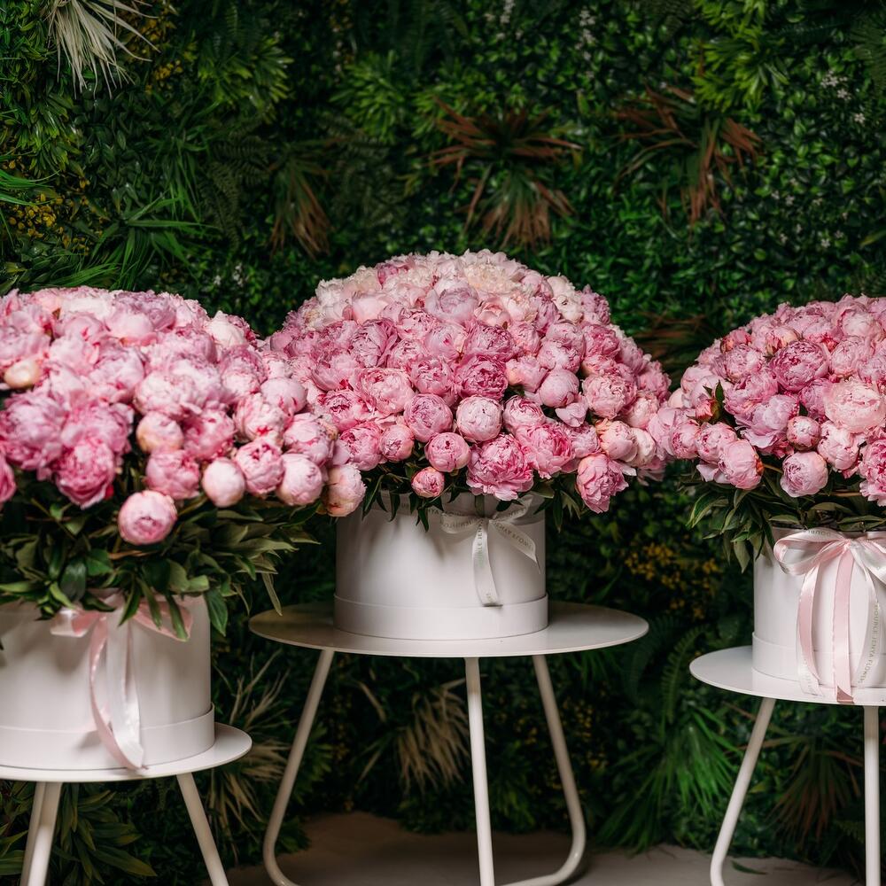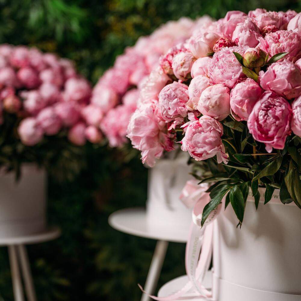 501 arreglo de peonías en cajas