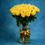 Yellow rose - 51 ud. ribbon satin - 1 ud. jarrón cilíndrico - 1 ud.