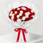 99 Whishes _ Lujoso ramo de rosas rojas y blancas para aniversario o cumpleaños
