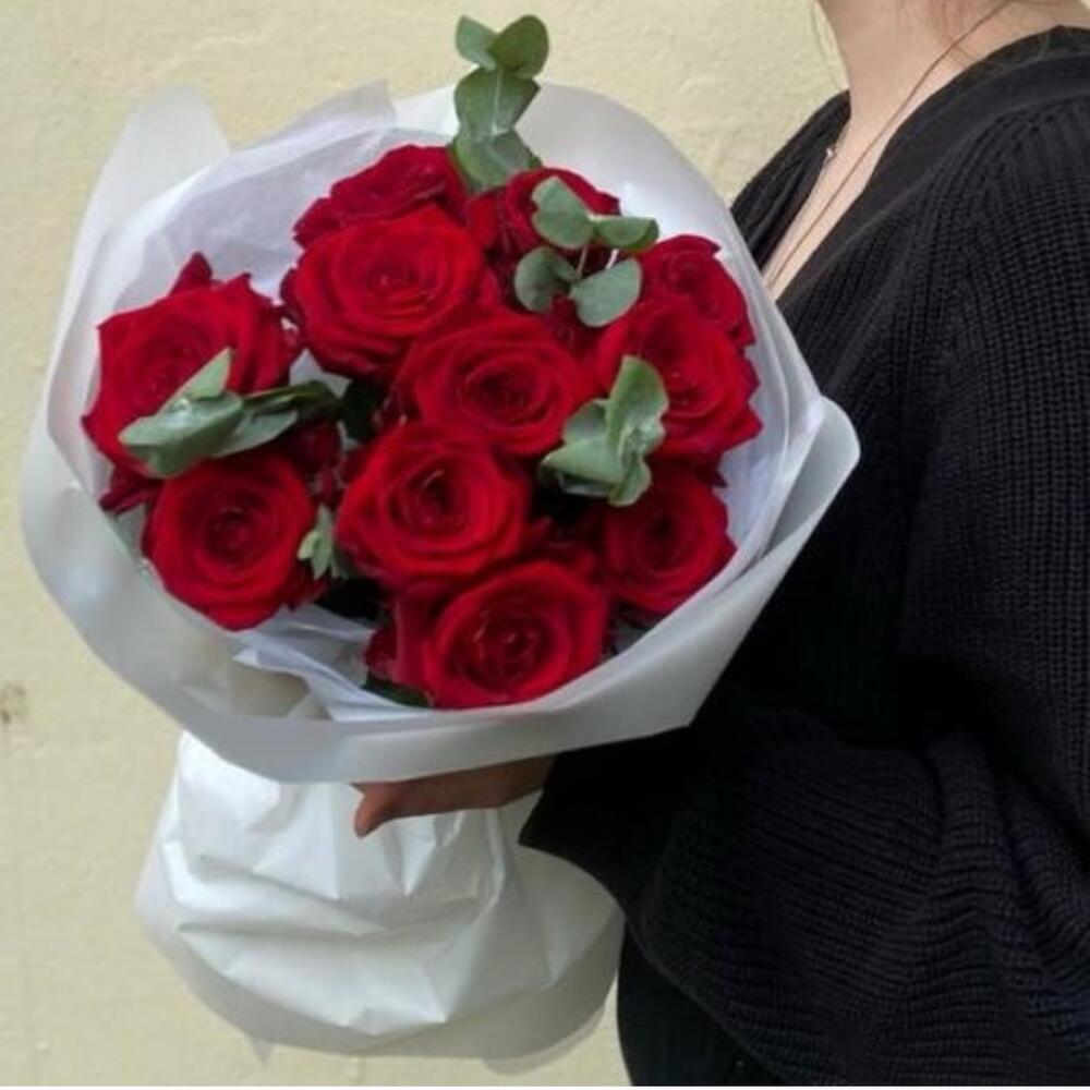 eucalyptus leaves - 5 ud. red roses - 15 ud.