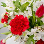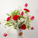 alstroemeria blanca - 10 ud. clavel rojo - 7 ud. tulipán rojo - 10 ud. jarrón cerámico de lujo - 1 ud.
