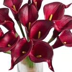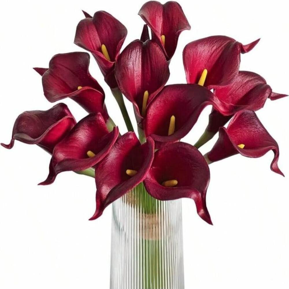 calas rojas - 10 ud. jarrón de vidrio transparente - 1 ud.