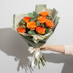 orange rose - 8 ud. wrapping paper - 8 ud. eucalyptus leaves - 6 ud.