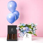 Descubre el encanto cautivador de nuestra colección Flores en Caja. Esta caja incluye tres hipnotizantes globos azules que solo aumentan la belleza de la composición. Entre ellos se encuentra un osito de peluche adorable, un amigo perfecto para entregar tus mensajes sinceros. Añadiendo un toque tierno al arreglo, hay un ramo de una docena de rosas de un suave color rosa, que simbolizan admiración y aprecio. Acompañada por una caja con 25 deliciosos chocolates, promete una experiencia dulce. Pero eso no es todo - tres vibrantes globos en forma de corazón y una pequeña caja con 16 chocolates adicionales que hacen la boca agua añaden una explosión de color y amor. Regala esta caja para hacer que una ocasión especial sea realmente inolvidable.