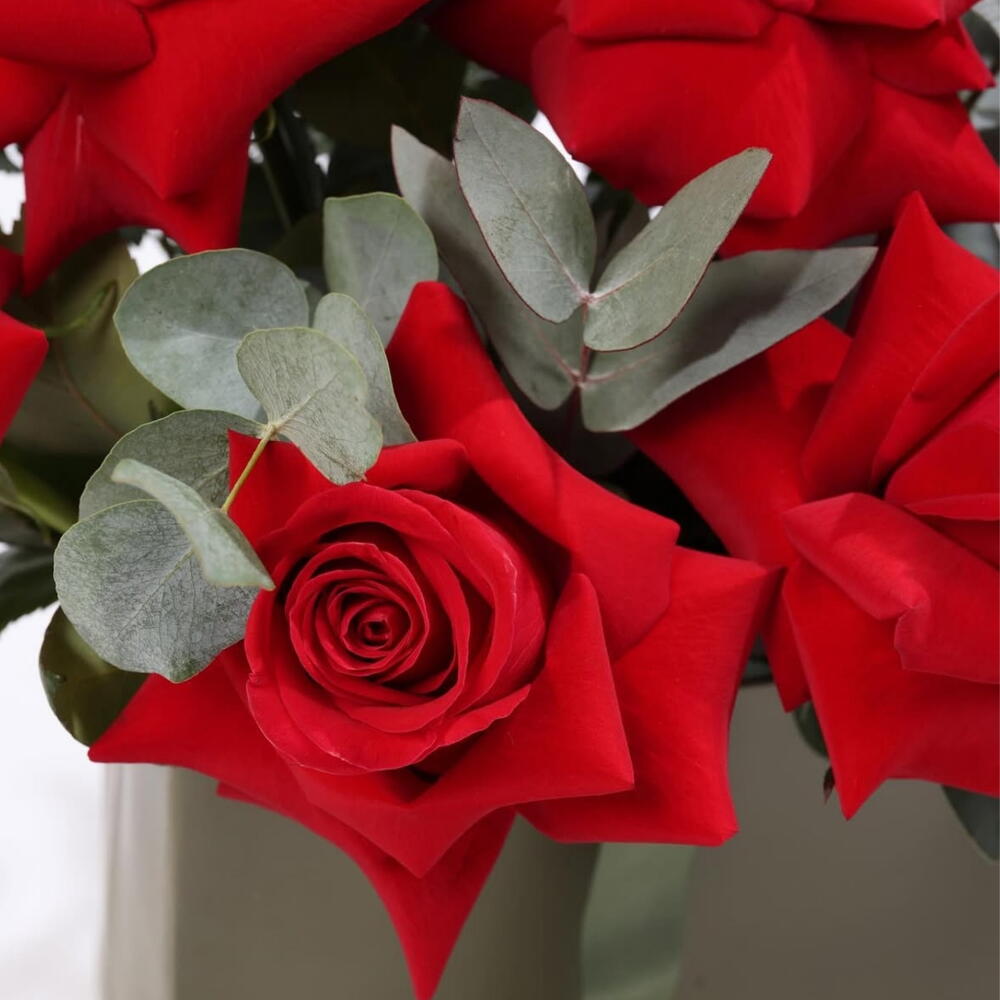 Red rose - 15 ud. Eucalyptus - 10 ud.