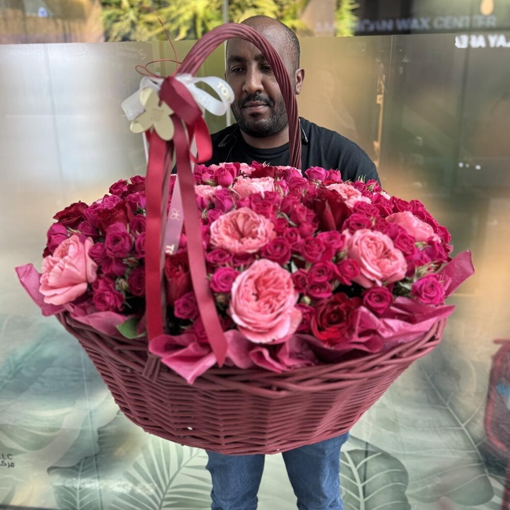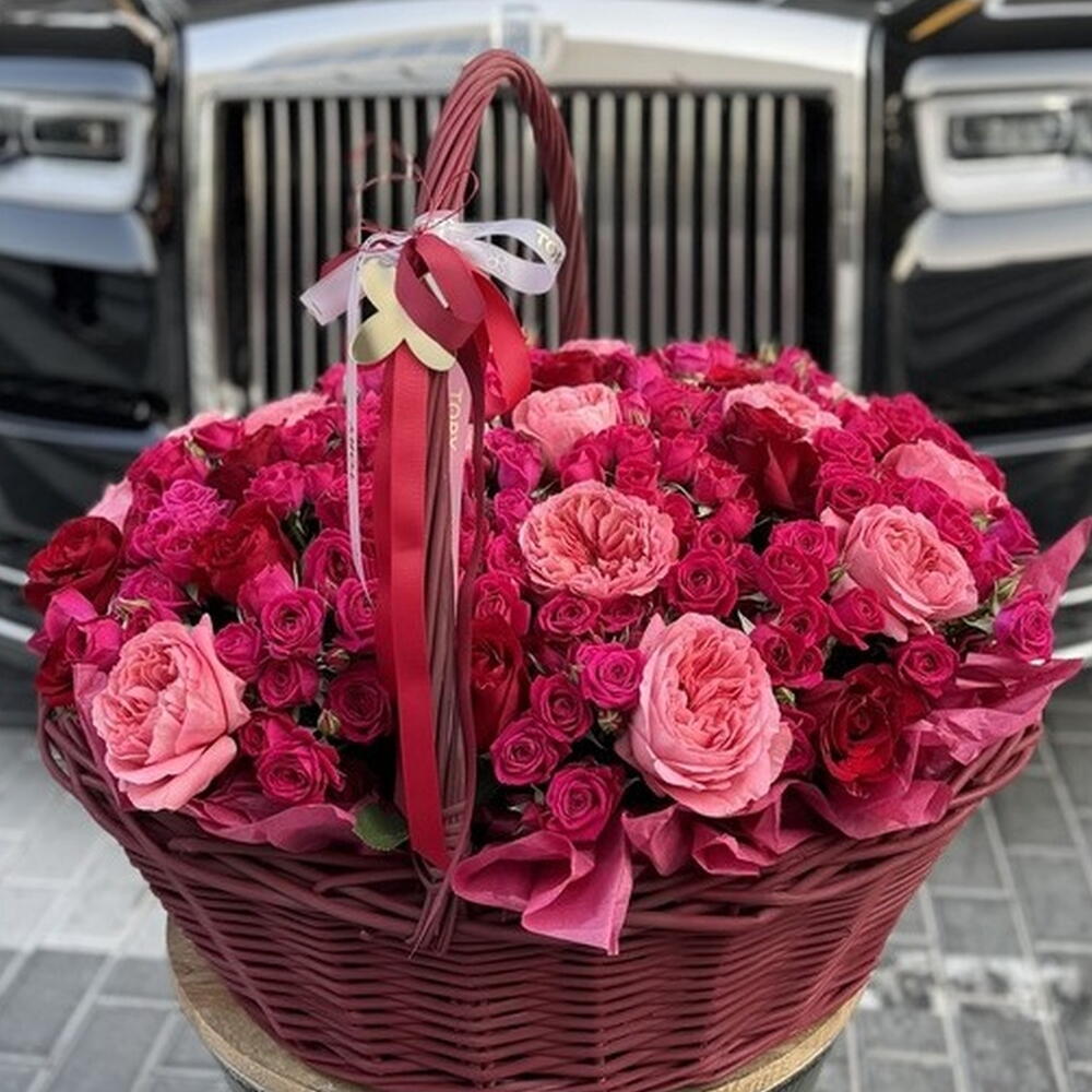 Composición: Rosa roja - 20, rosa Candy Expression - 20, Spray rosa Julieta frambuesa - 50, cesta - 1 Dimensiones: ANCHO - 60CM; ALTO - 60CM; LARGO - 60CM; (incluido el embalaje) Tamaño: 60 x 60 x 60 cm