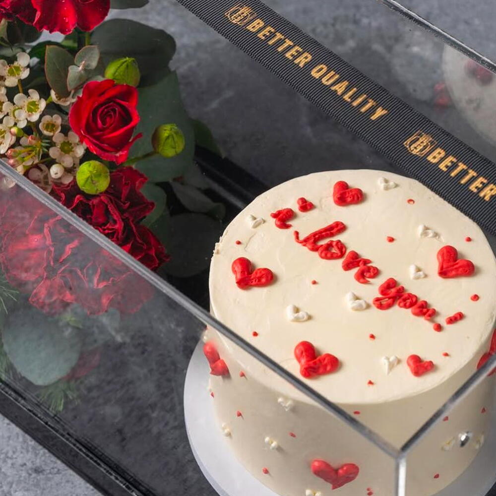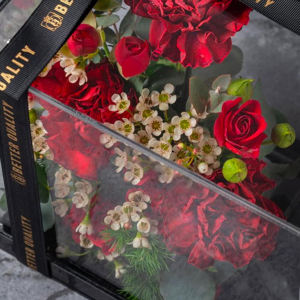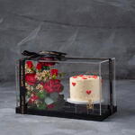 Sumérgete en la delicada frescura de nuestro set Flores en Caja. Este exquisito arreglo contiene 3 encantadoras flores de cera y 3 exuberantes rosas spray entrelazadas con 2 elegantes tallos de Asparagus. Completan la composición 3 aromáticas hojas de eucalipto, que llenan el entorno con un aroma relajante. Añadiendo una sorpresa caprichosa hay 1 delicioso pastel anidado entre las flores, un obsequio inesperado que brinda dulce placer. Esta encantadora selección es una mezcla única de flora, aroma y sabor que ofrece un viaje sensorial al destinatario.