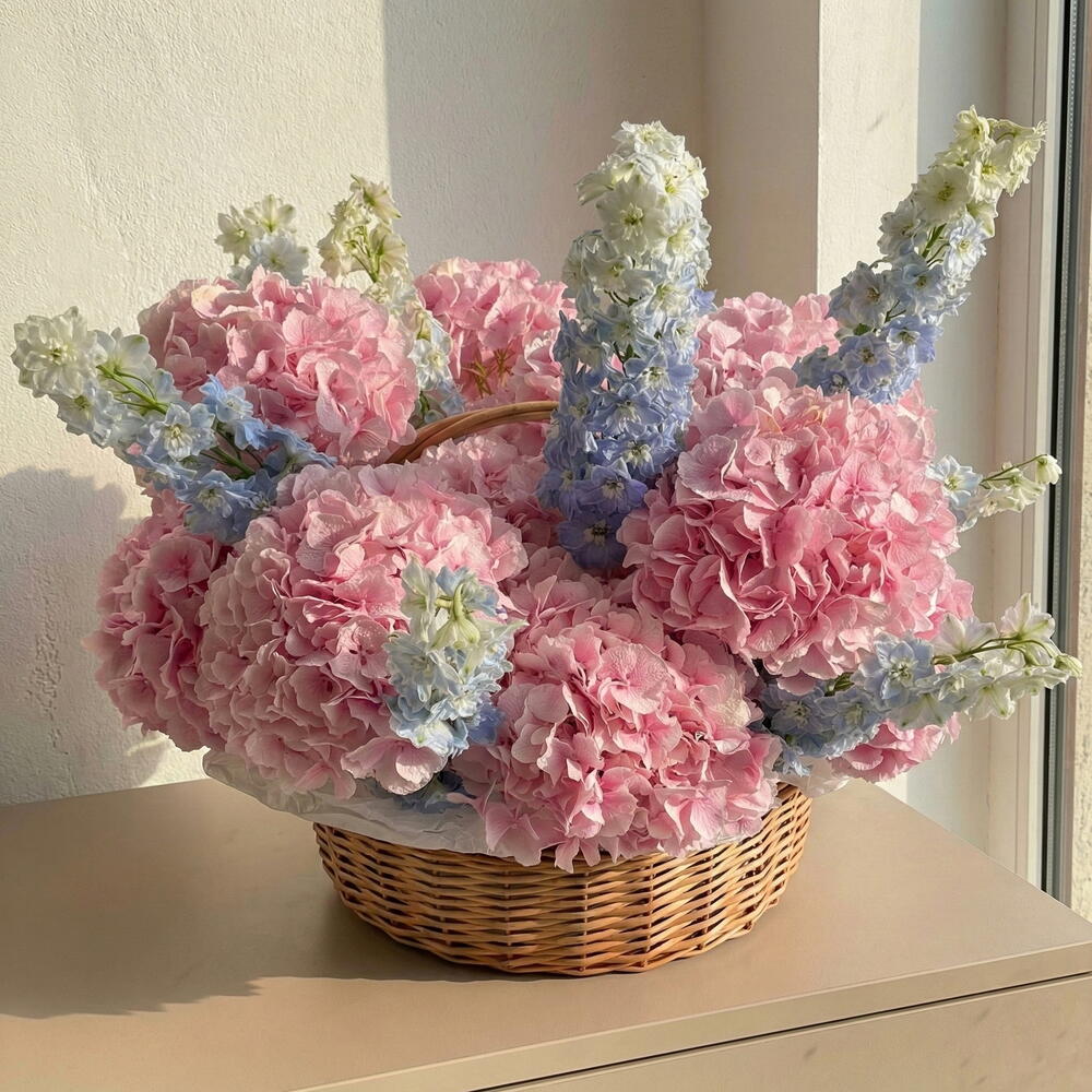 hydrangea pink - 10 ud. delphinium - 10 ud.