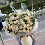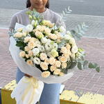 Eucalyptus - 4 ud. white lisianthus - 6 ud. rosas en spray color melocotón - 7 ud.