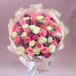 purple rose - 16 ud. limonium pink - 3 ud. roses white - 16 ud. roses pink - 20 ud.