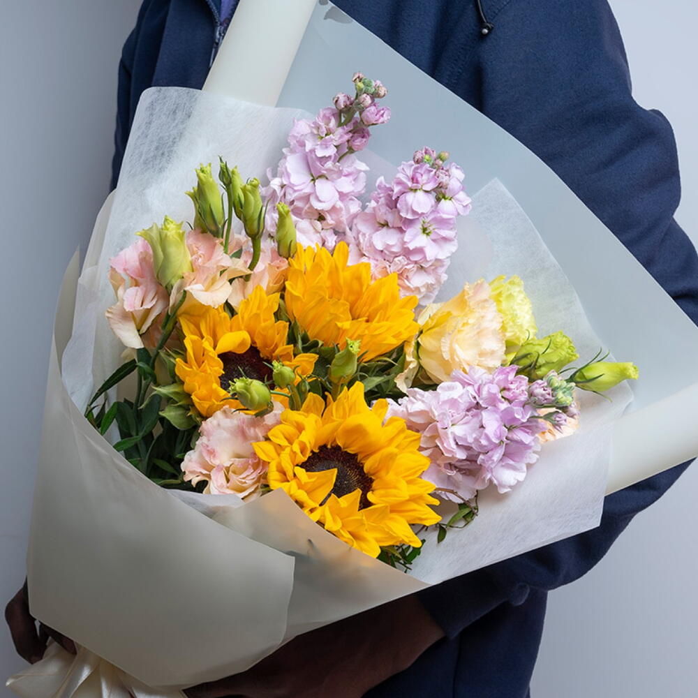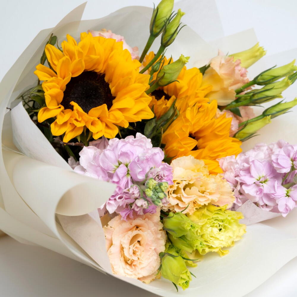 Sunflower - 3 ud. Lisianthus - 3 ud. matthiola - 3 ud.