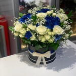 Levanta el ánimo con este impactante arreglo floral "Que te mejores pronto". El audaz contraste de flores azul rey y blanco puro crea una sensación de serenidad y fortaleza, perfecto para enviar deseos de recuperación y esperanza. Cuidadosamente colocado en una elegante sombrerera con un lazo y un adorno decorativo, este ramo aporta elegancia y calidez a cualquier habitación. Para asegurar que las flores se mantengan vibrantes, guárdalas en un lugar fresco, rellena la esponja floral con agua limpia cada 1 o 2 días y evita la luz solar directa o fuentes de calor. Este regalo floral es un reconfortante recordatorio de que piensas en esa persona. Ideal para momentos especiales como cumpleaños, aniversarios o cualquier ocasión especial, este ramo trasciende lo común y se convierte en una manifestación tangible de amor. Envíalo como regalo de cumpleaños, expresa deseos de aniversario, transmite sentimientos de pronta recuperación o simplemente desea un momento de cariño a un ser querido. Este lujoso arreglo es un gran gesto que dice mucho, perfecto para expresar amor y aprecio eternos. Ya sea un regalo romántico, una sorpresa de aniversario o una inolvidable declaración de afecto, este ramo hace que cada momento sea extraordinario. Aniversario, Cumpleaños, Lo siento, Nacimiento, Para cualquier ocasión, Gracias, Boda