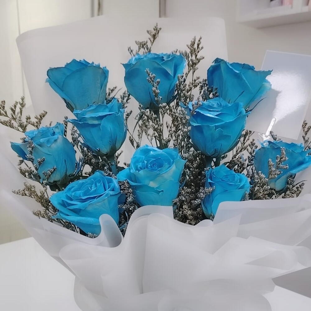 Las rosas azules son flores raras y cautivadoras que simbolizan el misterio, la singularidad y lo inalcanzable. Con sus tonos profundos y encantadores de azul—que van desde el suave pastel hasta los ricos tonos reales—estas rosas evocan una sensación de asombro e intriga. A menudo asociadas con los sueños, la esperanza y nuevas posibilidades, las rosas azules son una elección llamativa para ocasiones especiales, gestos románticos o arreglos florales artísticos. Ya sea regaladas como símbolo de admiración o usadas para crear una declaración audaz, las rosas azules añaden un toque de elegancia y mística a cualquier entorno.