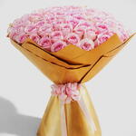 Ramo de 100 rosas rosadas con flores de relleno en un bonito envoltorio