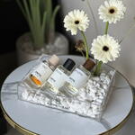 Una mezcla refinada de belleza y fragancia, la cesta de regalo de perfume Blush Elegance está diseñada para impresionar. Con arreglos florales en tonos rosa empolvado combinados con un perfume premium “Shadow – Exotic Series”, este regalo irradia sofisticación y encanto. Presentado en una base transparente y elegante llena de piedras blancas decorativas, aporta un toque moderno y lujoso a cualquier espacio. Perfecto para cumpleaños, aniversarios o ocasiones especiales, esta cesta combina una estética floral de larga duración con una fragancia cautivadora, convirtiéndola en una opción de regalo elegante y considerada.