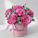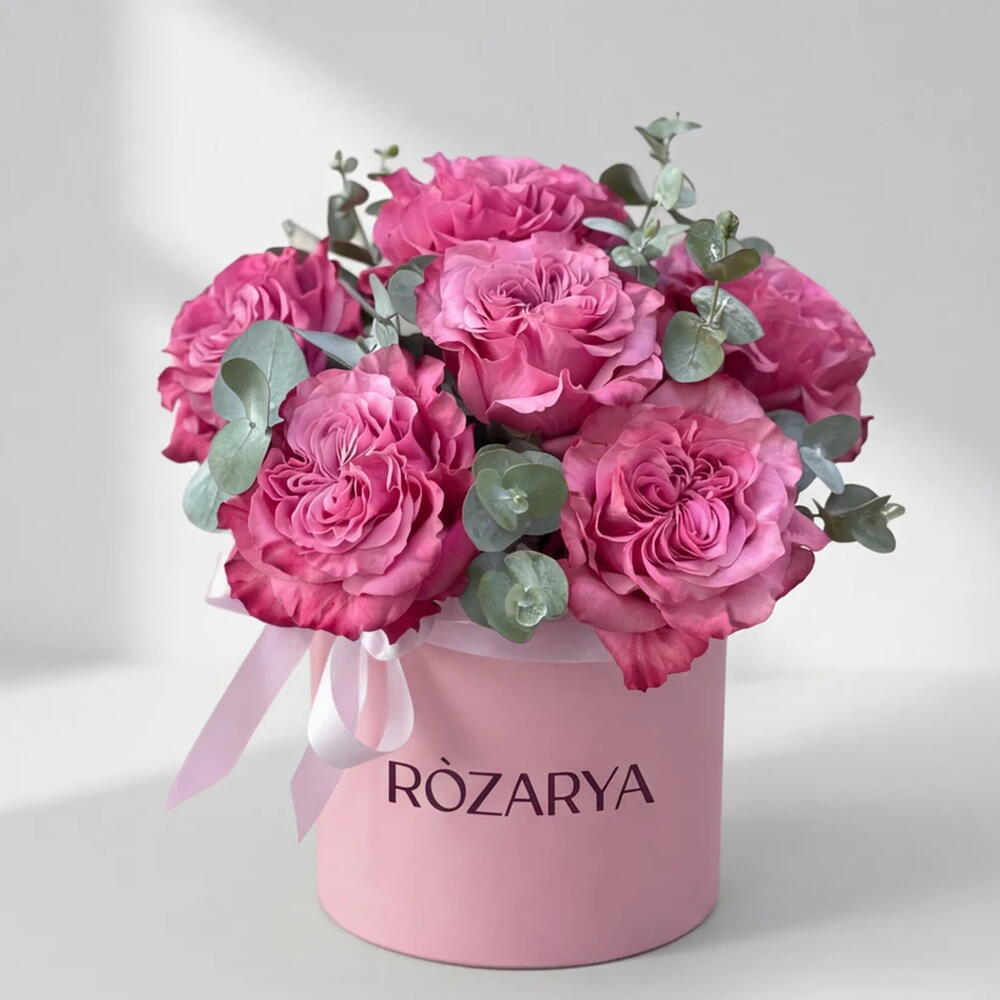 Un arreglo suave y romántico en ricos tonos rosados, diseñado con exuberantes rosas de jardín y eucalipto fresco en una encantadora caja de sombrero rosa. Femenino, elegante y lleno de carácter, esta pieza es perfecta para cumpleaños, aniversarios y para regalar con estilo a diario. • Tenga en cuenta: Como las flores son productos naturales, los colores reales pueden variar ligeramente respecto a las imágenes digitales debido al crecimiento estacional y a las condiciones de iluminación. Garantizamos que el estilo general y la calidad premium, así como la frescura de su arreglo, siempre se mantendrán.